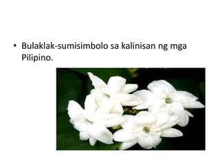 Kinokolekta namin ang mga bulaklak sa umaga pinunan ng malamig na tubig. Ano ang pambansang bulaklak. Simbolo ito ng kalinisan.