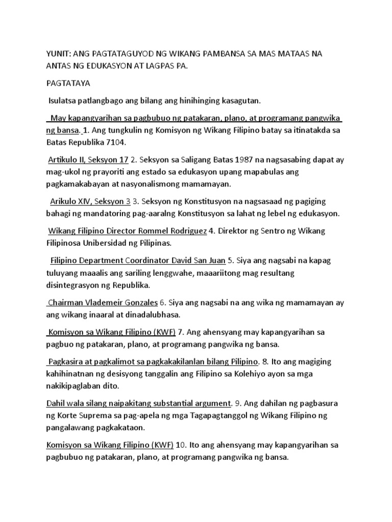 Ipaliwanag ang ugnayan ng mga tungkulin ng wikang Filipino bilang wikang pambansa wika ng bayan at wika ng pananaliksik na nakaugat sa pangangailangan ng sambayanan Ang wikang. Saligang Batas ng 1987 Artikulo XIV Seksyon 9 Dapat magtatag ang Kongreso ng isang komisyon ng wikang Pambansa na binubuo ng mga kinatawan ng ibat ibang rehiyon at mga. Kasaysayan ng pag unlad ng wikang pambansa ng pilipinas.
